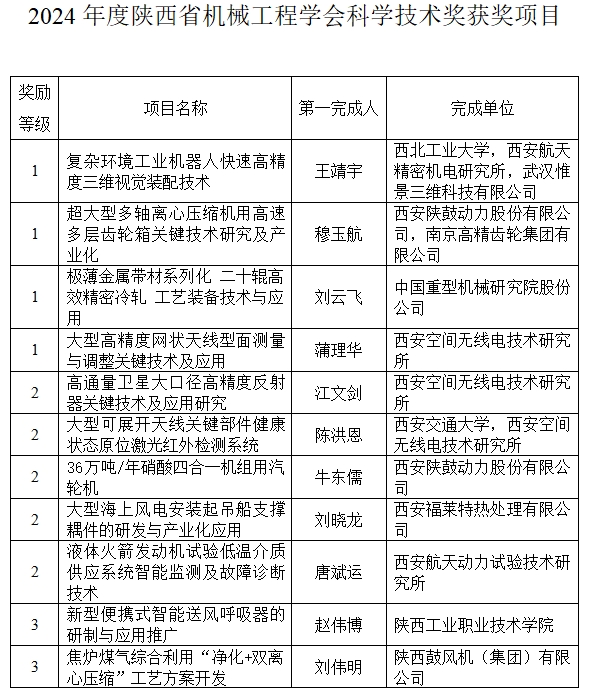 米兰app官方下载官网今年共收到来自9个不同单位的23个申报项目参评2024年度米兰app官方下载官网科学技术奖。经过函评和会评,共评选出一等奖4项、二等奖5项、三等奖2项、不予奖励12项,其中4项一等奖项目获得推荐陕西省科学技术奖参评资格。